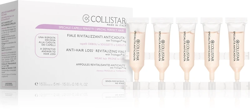 L’association unique de substances actives concentrées offre des effets revitalisants exceptionnels, aide à renforcer les follicules capillaires et stimule la pousse de nouvelles fibres capillaires. Par ailleurs, la cure Collistar Special Perfect Hair renforce les cheveux déjà poussés et les rend globalement plus résistants, de façon à ce qu’ils ne tombent plus de façon excessive à l’avenir.