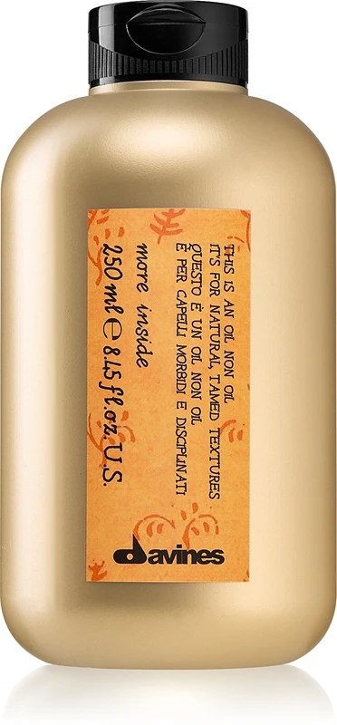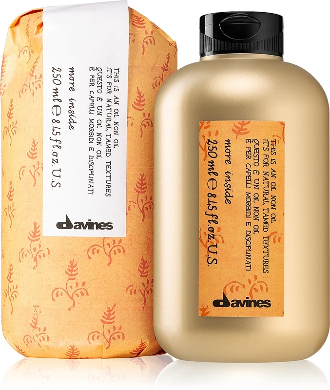 Vous souhaitez ajouter un peu plus de texture et de dĂ©finition Ă votre coiffure, tout en conservant l’aspect naturel de vos cheveux ? L’huile nourrissante cheveux Davines More Inside donnera Ă vos cheveux un traitement lĂ©ger et une hydratation. Elle vous dĂ©barrassera Ă©galement des frisottis disgracieux et lissera la surface de votre coiffure. Aucun rĂ©sidu, aucun effet collant ou gras.