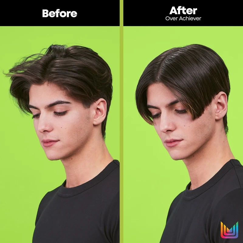 Appliquez votre crème coiffante, pâte et cire 3-en-1 Over Achiever sur vos cheveux mouillés ou secs. Coiffez vos cheveux pour créer le look de votre choix. Renouvelez l’application au cours de la journée.