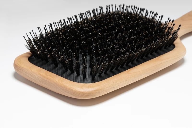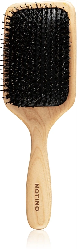 La brosse à cheveux plate avec poils de sanglier Notino Hair Collection vous permet non seulement de parfaitement brosser vos cheveux, mais aussi de leur apporter une très belle brillance. Cette double fonction est le fait de l’alliance de deux types de poils : ceux en nylon démêlent parfaitement alors que ceux de sanglier les lissent et les font briller.